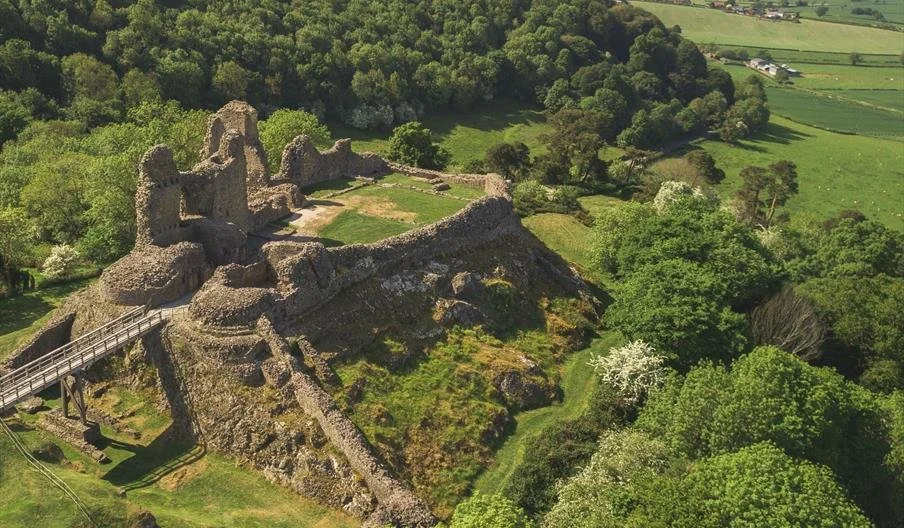 The castle perches on a ridge offering strategic views over the town, Severn valley and borders.